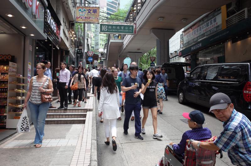 「中環」貴為香港的「心臟」,其名源於19世紀,香港華人對港島北岸城區的通俗分區為「四環九約」,中環是其中一環(其餘為西環、上環,及現今灣仔、銅鑼灣一帶的下環)。從太平山頂眺望下去,2017年的中環多了不少地標性建築,如:高聳如雲的國際金融中心(IFC)及著名華裔建築師貝聿銘設計的中銀大廈。德輔道中兩旁的殖民地式建築,亦早已變成高廈林立的街道,郵政總局亦拆卸搬遷改建為環球大廈。名店及絡繹不絕的人流,訴說着忙碌又繁榮的香江故事。