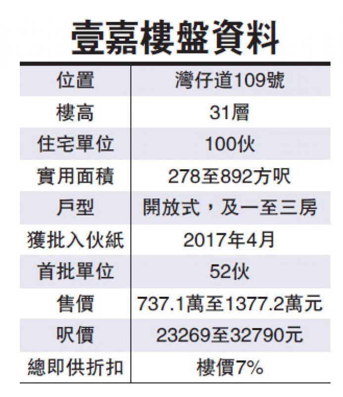 近年積極拓展本港地產業務的何鴻燊太太梁安琪,其主力地產投資及發展的私人公司尚嘉,推出首個住宅盤灣仔壹嘉,將在下月初開售,剛公布首份涉及52伙的售價,平均呎價逾2.85萬元,扣除樓價7%的最高折扣率,平均呎價也逾2.65萬元。另即將公布首批單位售價的荃灣海之戀二期愛炫美,發展商長實(01113)擬與七家提供逆按揭服務的銀行合作,為靠「父母幹」的子女,支付買該盤的首期。\大公報記者 林志光