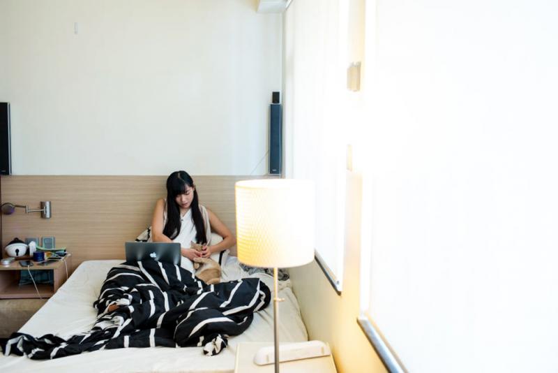 圖:游蕙禎接受外媒Getty Images拍攝的床照(大圖),與業主委託地產中介網上放盤相周遭環境一樣\Billy H.C.Kwok/Getty Images