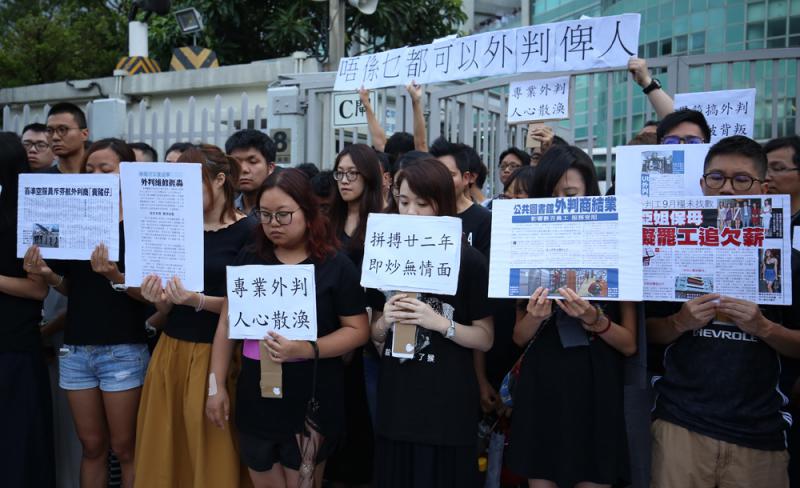 圖:過百名壹傳媒員工發起工業行動,抗議壹傳媒黑箱外判\大公報記者黃洋港攝