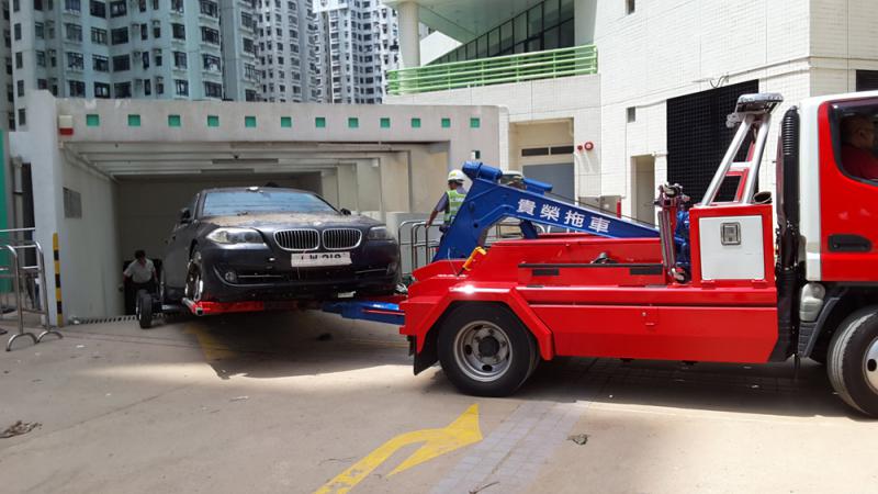 昨晨,杏花邨管理公司仍派員在停車場內清理積水,和檢走場內垃圾,其間於場外擺放多對水鞋,供進入車場人士使用。九時許,一對年約40歲男女,安排拖車到停車場,眼見自己的平治房車被拖走,表示欲哭無淚,男子表示夫婦十號風球當日,獲朋友通知車場水浸,落樓查看時水已及膝,為了自身安全「決定唔救車,錢財身外物,人命緊要。」他們表示該輛平治房車於2009年購入,相信「保險賠唔足」。