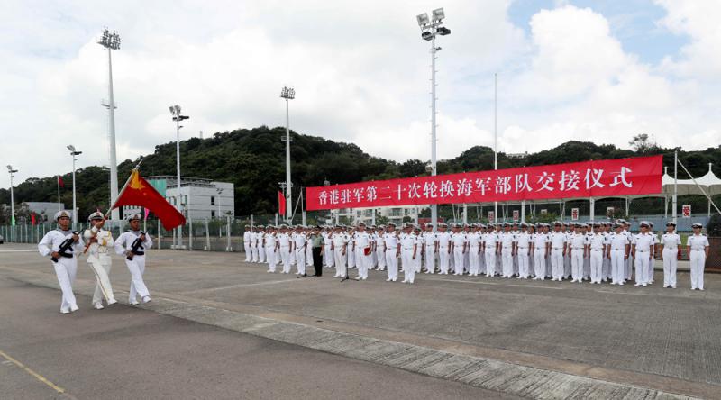 【大公報訊】解放軍駐港部隊昨日完成進駐香港以來第20次建制單位輪換行動。部隊輪換後,駐軍在香港特別行政區的部隊員額和裝備數量保持不變。駐軍強調,此次輪換進港的陸、海、空軍分隊官兵將認真落實「一國兩制」、基本法和駐軍法,堅決維護國家主權、安全和發展利益。