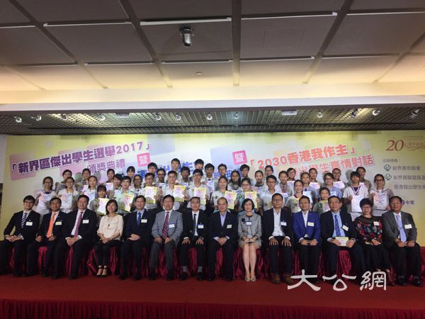 大公網8月26日訊(記者 葉漢亮)新界青年聯會今舉行「新界區傑出學生選舉2017」頒獎典禮暨「香港傑出學生會」第四屈執行委員會就職典禮,表揚10位傑出學生及33位優秀學生獲。