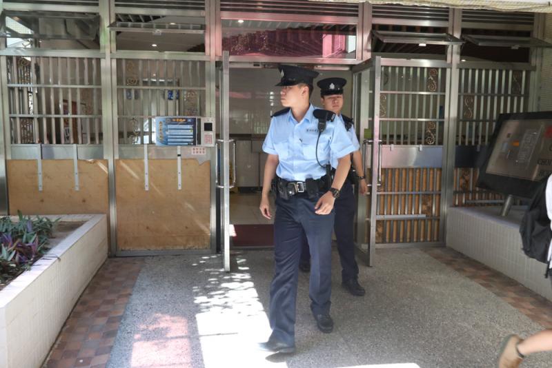 圖:上水彩蒲苑彩碧閣一單位揭發男戶主失救死亡,不良於行老伴伴屍多日悲劇,警員到場調查