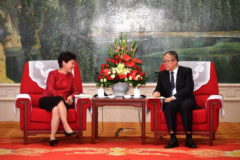 圖:行政長官林鄭月娥(左)與天津市委書記李鴻忠(右)會面