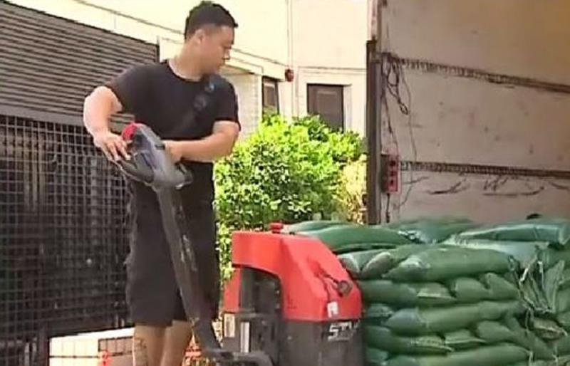 圖:早前「天鴿」襲港期間水浸的杏花邨在屋苑各處擺放沙包戒備」電視截圖