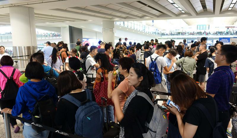圖:「帕卡」吹襲,機場迫滿旅客\大公報記者黃洋港攝