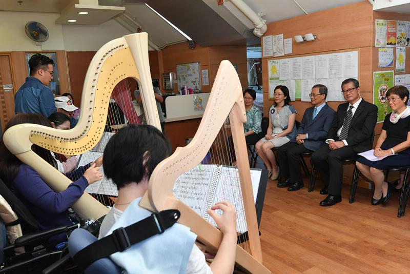 隨後,陳茂波又去咗參觀耀能協會賽馬會「新頁居」、東華三院愛烘焙生產及培訓中心。「新頁居」係全港唯一為四肢癱瘓病人提供護理同支援嘅服務院舍,佢睇完病人接受日間訓練情況及欣賞豎琴表演後,同院舍病人、家屬傾偈。到愛烘焙生產及培訓中心,陳茂波好主動了解中心殘疾人士員工工作情況。