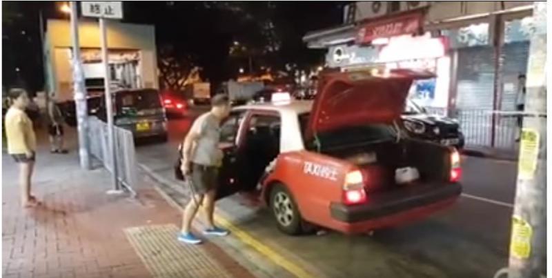 圖:紅的司機手持一支鐵通對乘客破口大罵,遭途人拍片放上網/網上影片截圖