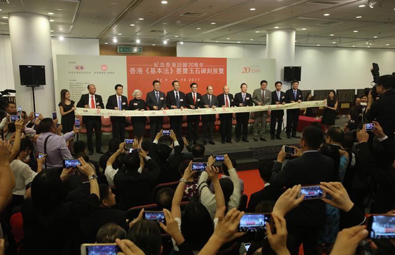 由香港中華廠商聯合會(廠商會)與香港華僑華人總商會合辦的「香港《基本法》墨寶玉石碑刻展覽」昨日在中央圖書館開幕。主禮嘉賓之一、署理行政長官張建宗表示,基本法是香港回歸祖國後的政治、社會和經濟制度的重要基礎,保障「一國兩制」、「港人治港」、高度自治的方針。他期望今次展覽能夠讓市民加深對基本法的了解。