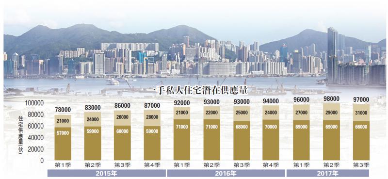 縱使政府仍維持穩定的供地政策,截至上季底已批土地並可隨時動工的項目,所涉單位量按季再添2000伙,至3.1萬伙,創紀錄新高,然總潛在供應仍要微減。