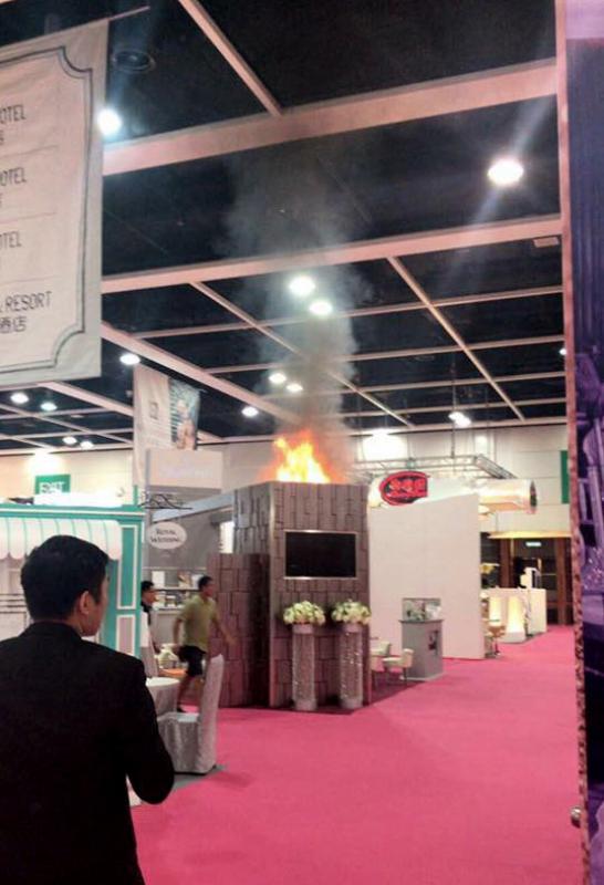 圖:會展內有攤位疑射燈過熱失火冒煙\網上圖片