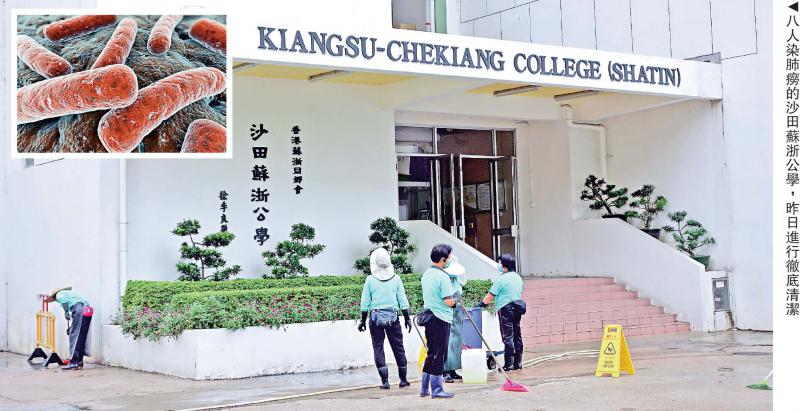 圖:八人染肺癆的沙田蘇浙公學,昨日進行徹底清潔