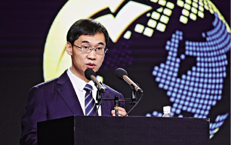 圖:央視財經頻道總監齊竹泉會上致辭,提到定下今次論壇主題的三個原因
