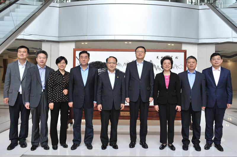 圖:中聯辦主任王志民(中)、副主任仇鴻(右三)與北京市代市長陳吉寧(右四)一行合影 中聯辦
