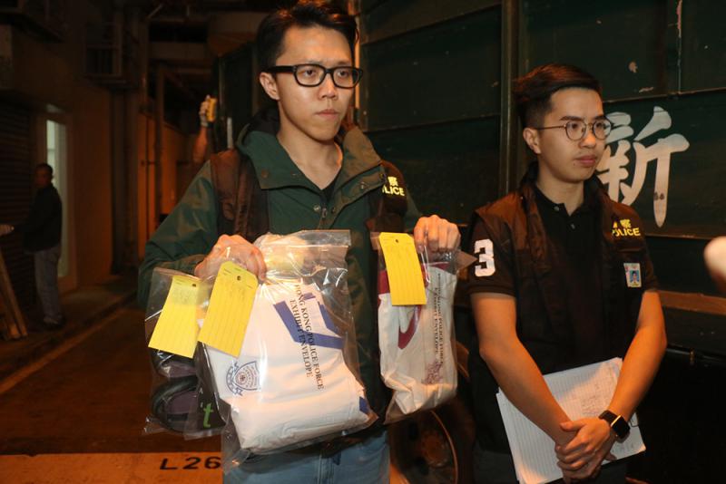 圖:警方在被捕易服男子家中,檢獲校服裙\大公報記者周慶邦攝