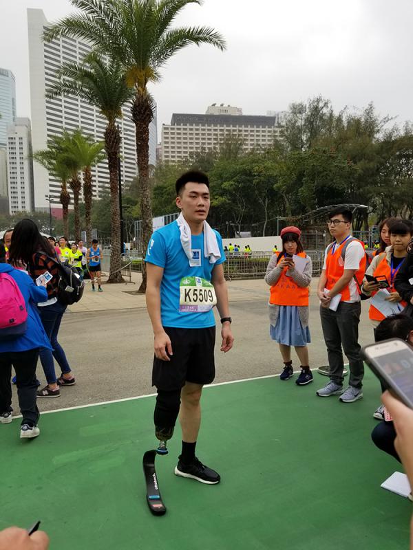 「刀片跑手」31歲的慎先生今年參加10公里賽事,他稱,四年前重拾跑步,今年第二次以刀片代替義肢參賽,上次為半馬賽,但成績不如預期,故改跑10公里。「上斜困難,肌肉要比常人更用力,刀片接駁處焗汗仍要堅持。」他認為,自己的堅持能感動其他「刀片跑手」,一同完成賽事,達到目標便十分滿足。