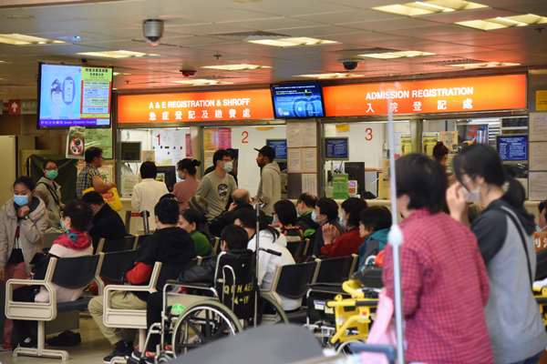 香港公立醫院持續爆滿,昨日有5479人次求診。圖為20日的伊利沙伯醫院急症室(中通社資料圖)