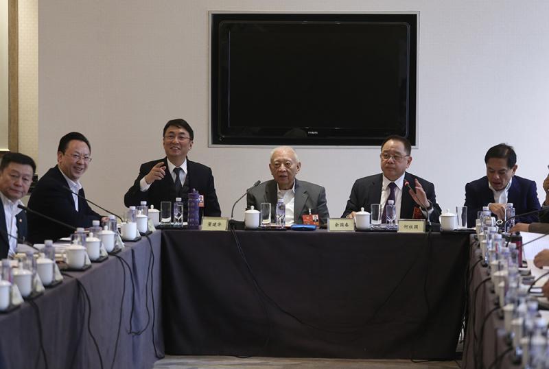 圖:124名香港特邀委員分成兩組進行小組會議,董建華(右三)主持其中一個港區小組會議/大公報記者何嘉駿攝