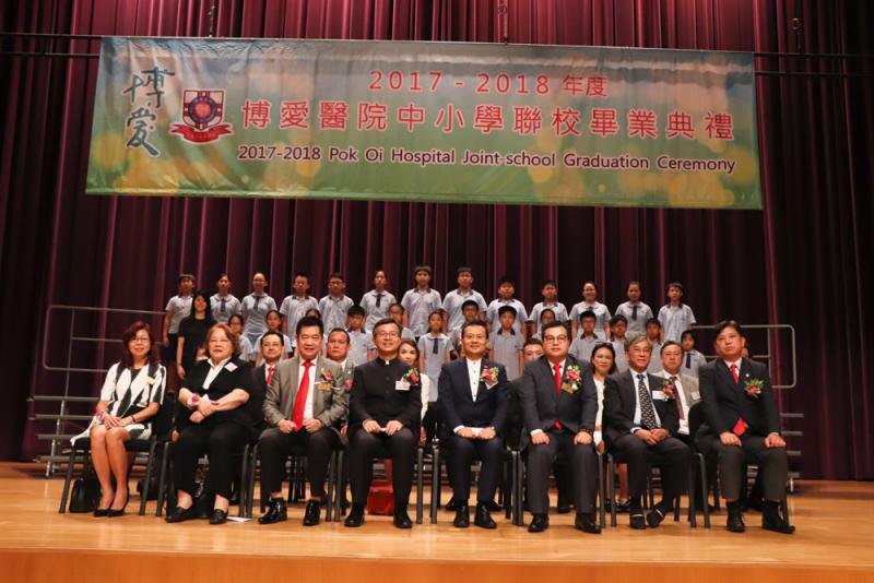 博愛醫院於5月12日為屬下中小學舉行聯校畢業典禮,典禮邀得全國人大港區代表陳勇、考試及評核局秘書長蘇國生主禮,為畢業同學授憑致訓。