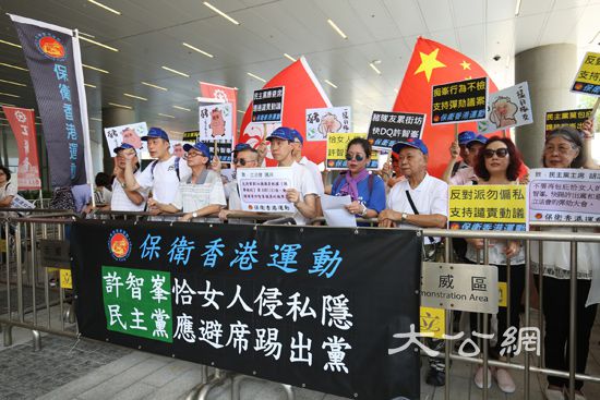 另外,「保衛香港運動」三十多人亦從金鐘海富中心遊行至立法會示威區,要求許智峯下台。他們批評許智峯搶手機事件的性質,較反對派過往衝擊立法會主席台、破壞議事秩序等行為都更為嚴重,希望反對派勿再包庇,令譴責動議通過,還全港市民一個公道。