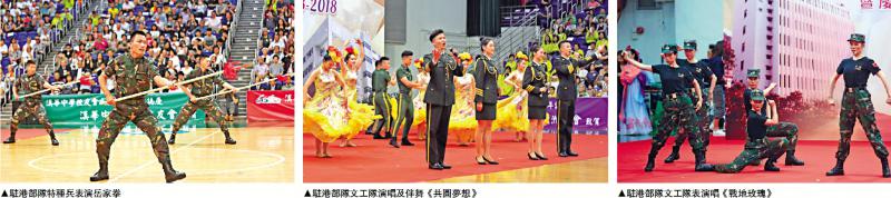 駐港部隊聯同漢華學生一同表演節目和籃球表演賽後,又表演岳家拳等看家本領,現場不時響起歡呼、掌聲,熱烈的氣氛久久持續着。其中,由駐軍文工隊聯同漢華校友、中學生及小學生合唱的《中國夢》,配以手風琴伴奏,「我的夢和你的夢,每一個夢源自黃河」,四組聲音匯聚一刻,贏得全場鼓掌。