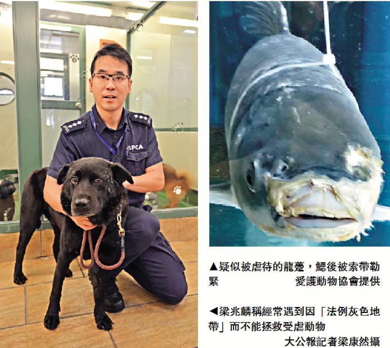 虐待動物豈止打踢等行為,龍躉被索帶纏頸困在酒樓魚缸,狗狗被主人長期困在天台日曬雨淋,儘管有人作出投訴,但現行保護動物條例存有灰色地帶,例如條文內容有含糊地方,或是要求證明動物正在受苦,導致出現動物受虐事件也欲救無從。愛護動物協會及立法會議員都認為,政府應及早完善保護動物條例,堵塞灰色地帶。/大公報記者 梁康然