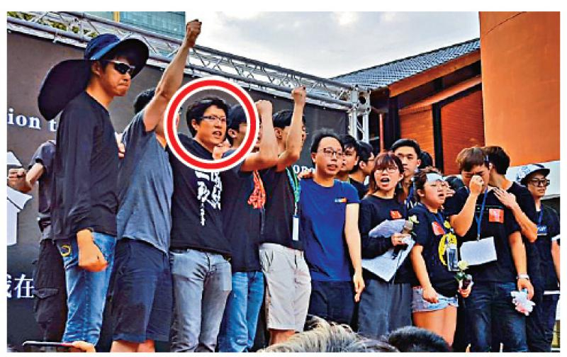 圖:巫堃泰(圓圈示)曾往台灣出席民進黨副秘書長林飛帆號召的支持香港示威者的集會。(大公報資料圖片)
