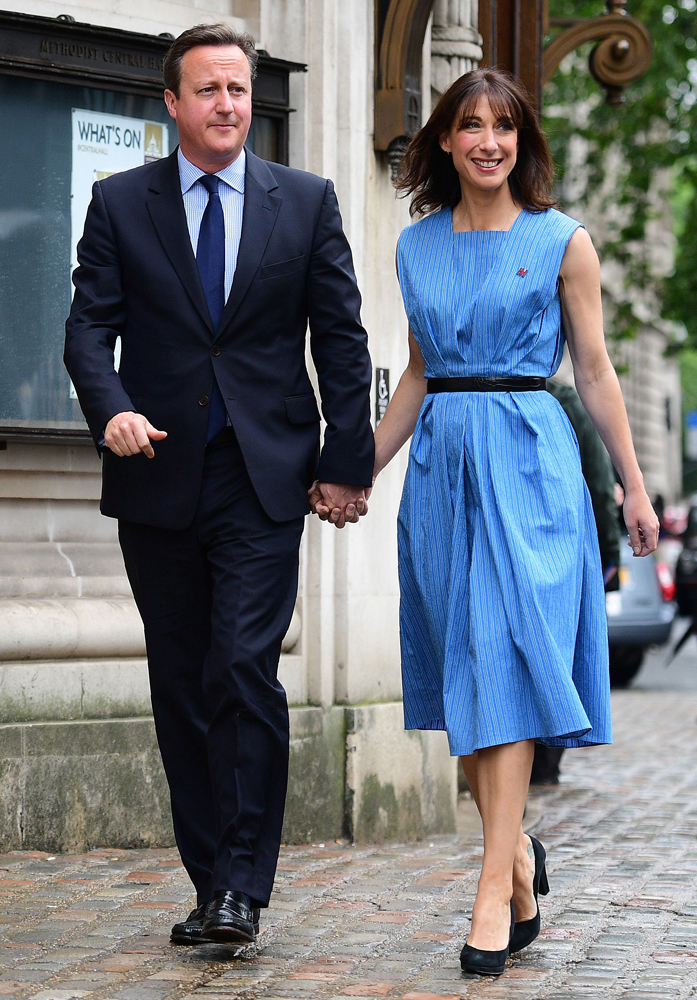 圖:英國首相卡梅倫及夫人23日早早抵達票站\法新社