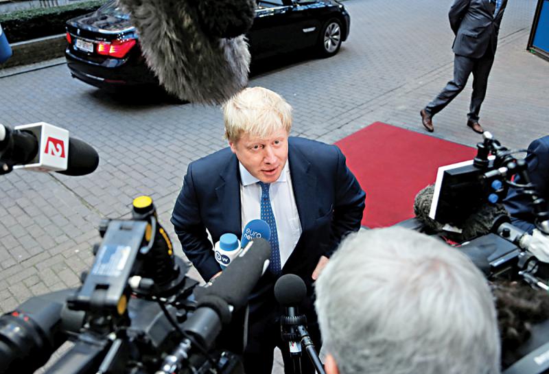 圖:英國外相約翰遜18日抵達布魯塞爾/路透社