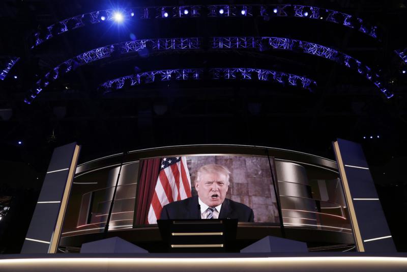 圖:共和黨全國代表大會次日,特朗普突然從大屏幕出現/美聯社
