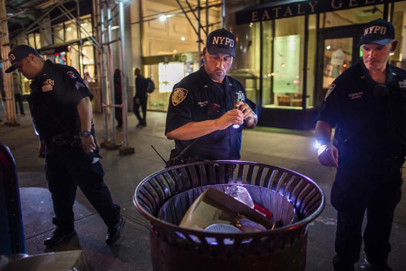 圖:紐約警察19日在曼哈頓搜尋可疑物品\美聯社