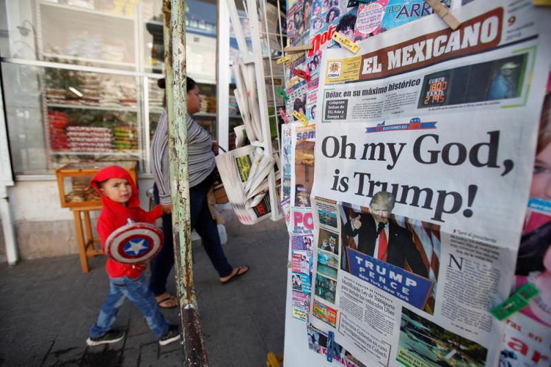 圖:墨西哥街頭貼着報道特朗普勝選的報紙\路透社