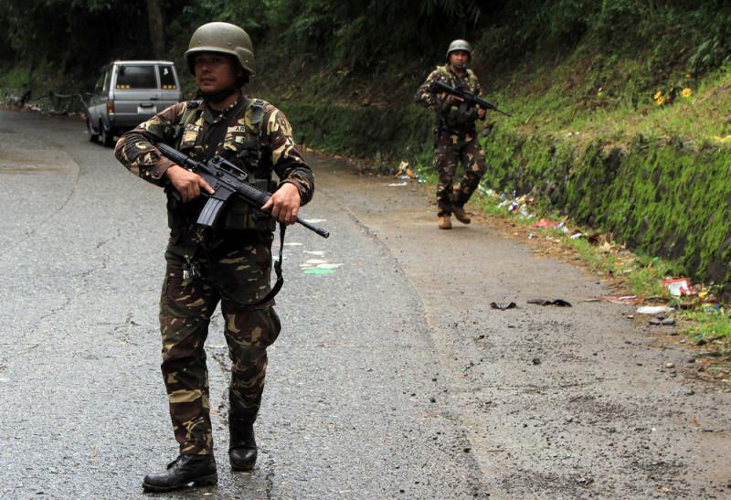 圖:菲律賓士兵對29日的爆炸地點進行搜查 法新社