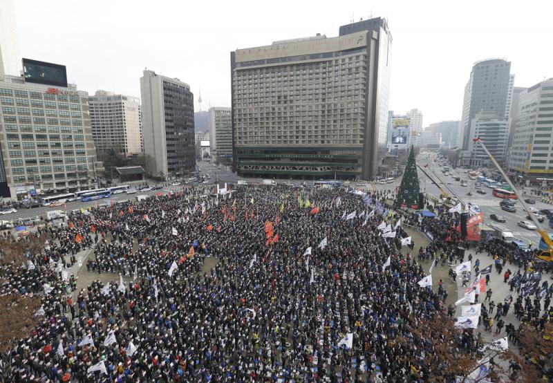 圖:韓國首爾11月30日再現大型示威促總統朴槿惠下台\美聯社