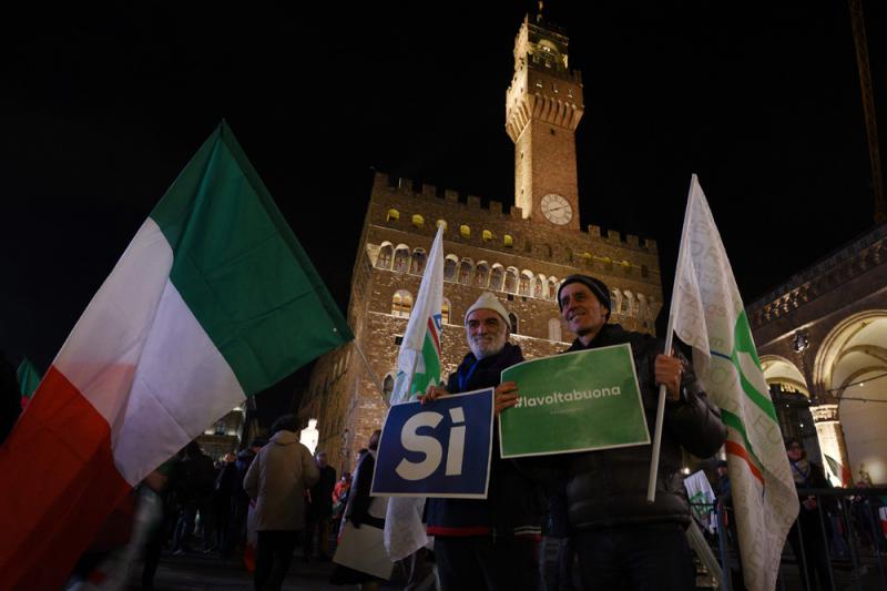 圖:倫齊的支持者2日在佛羅倫斯領主廣場上集會\法新社