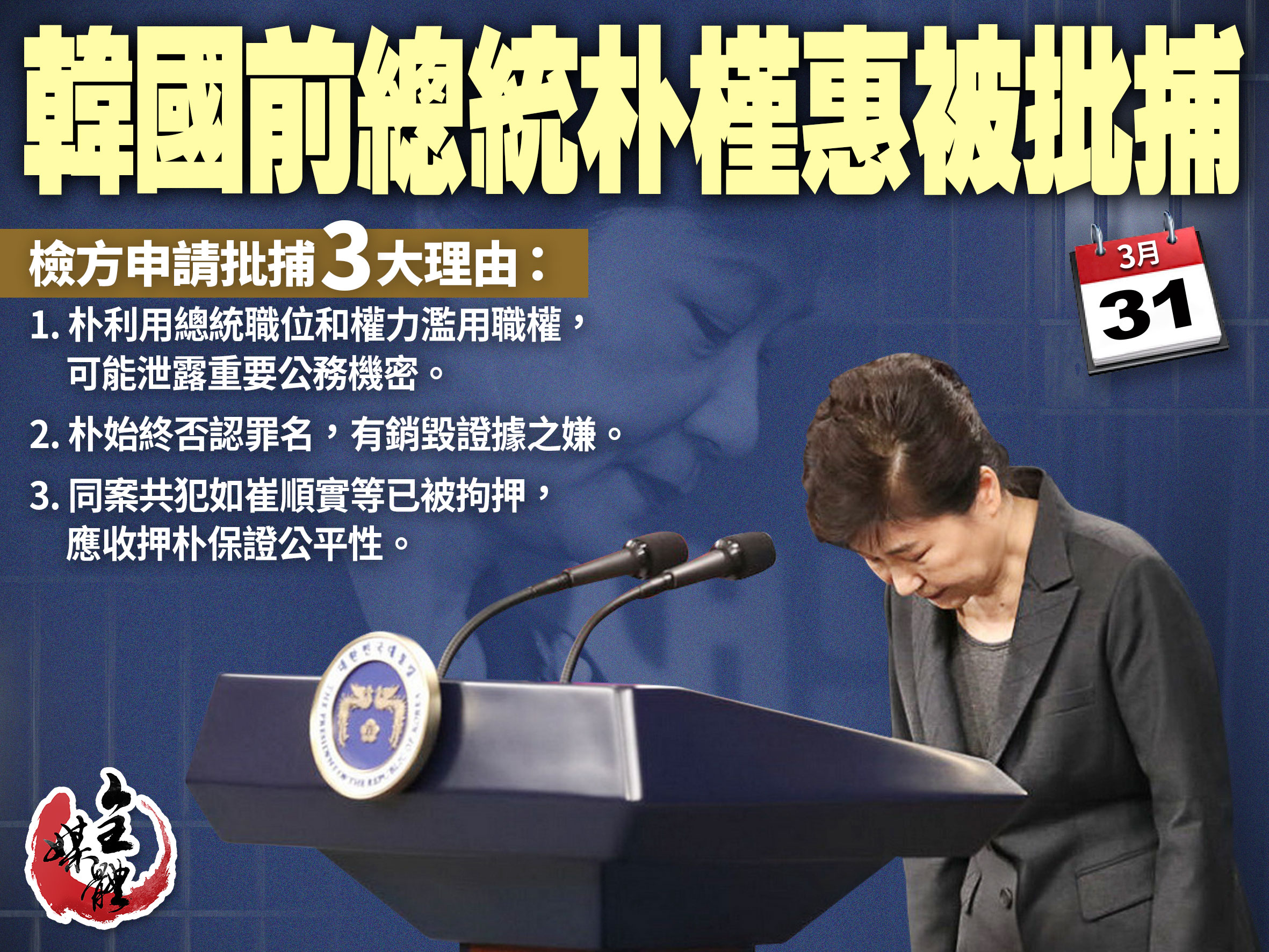 2017年03月27日|韓國檢方向法院申請批准逮捕前總統朴槿惠。