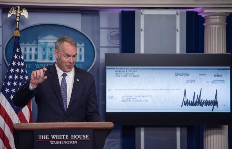 圖:美國內政部長津克表示總統特朗普的捐款將用於維護國家戰場遺址\路透社