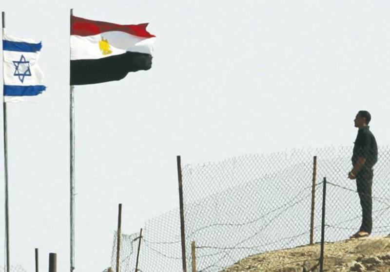 圖:以色列和埃及國旗(右)飄揚在塔巴鎮邊境\路透社