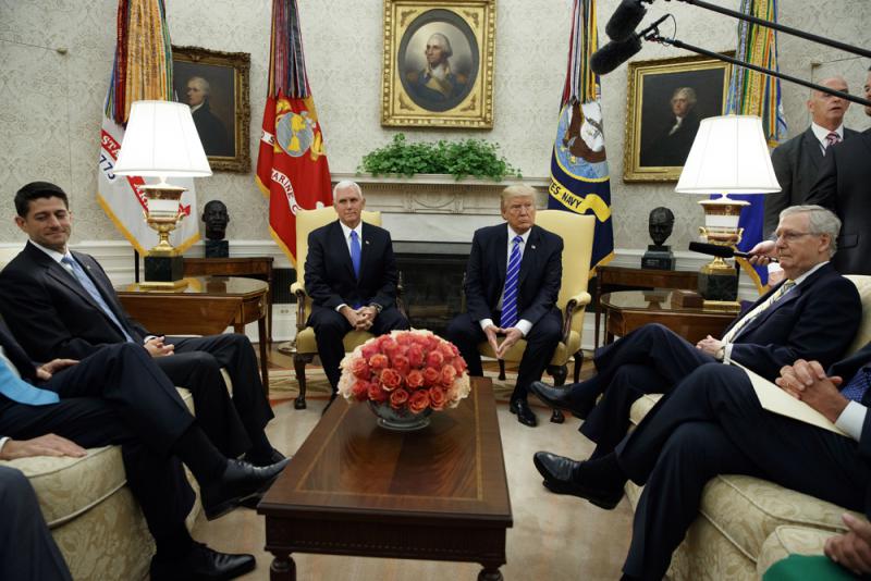 圖:美國總統特朗普和副總統彭斯6日在白宮和國會代表進行會談\美聯社