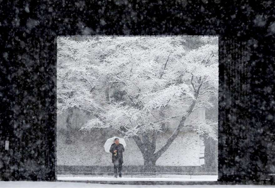 日本關東地區昨午(22日)降下大雪(彭博、路透、法新社)