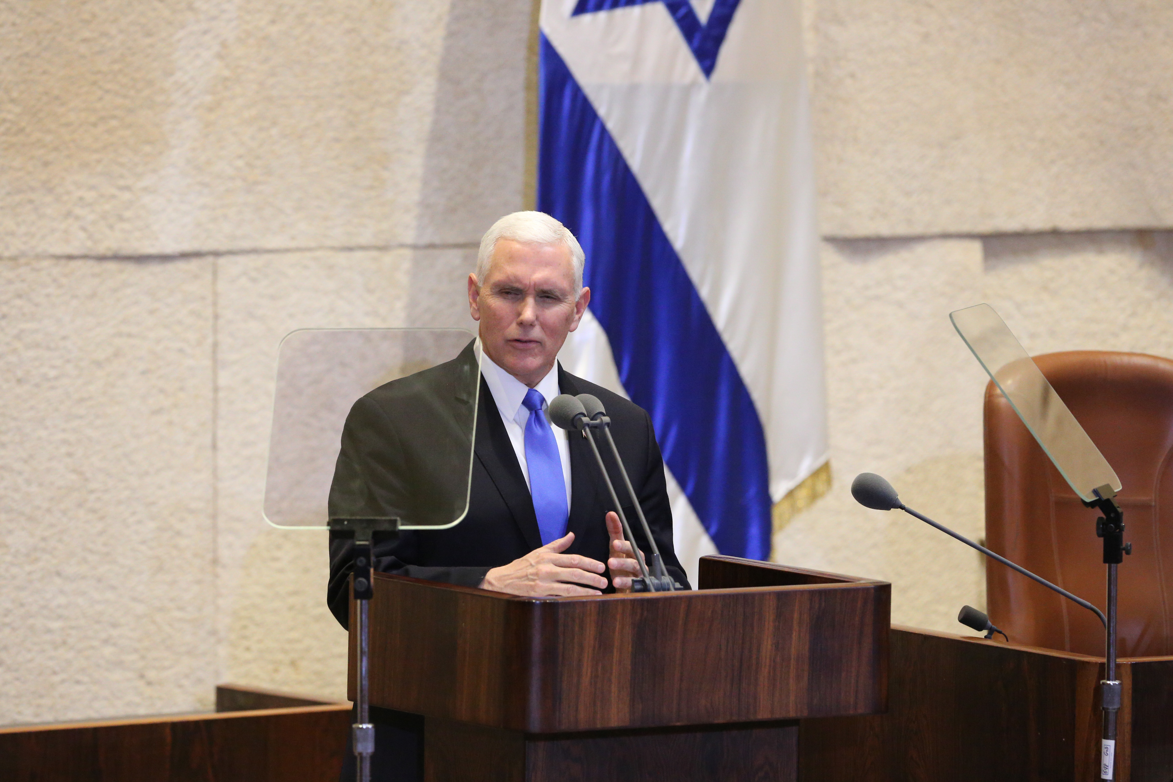 美國副總統彭斯在以色列議會發表演講 (新華社資料圖片)