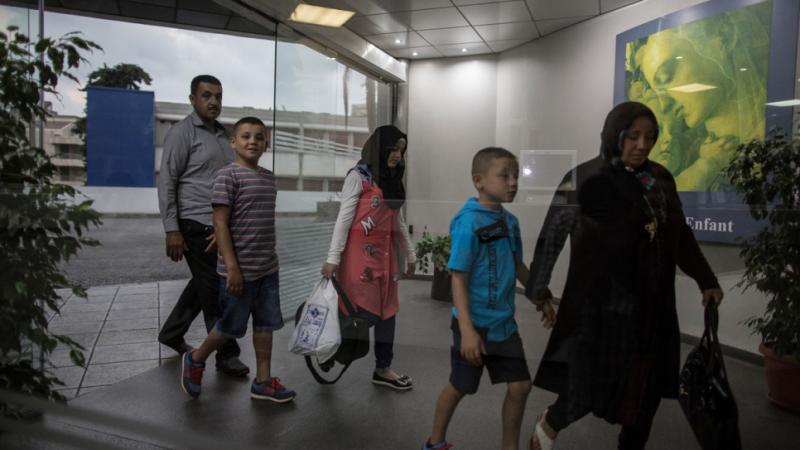 圖:穆罕默德(左二)和伊薩姆(右二)一家抵達醫院/聯合國難民署