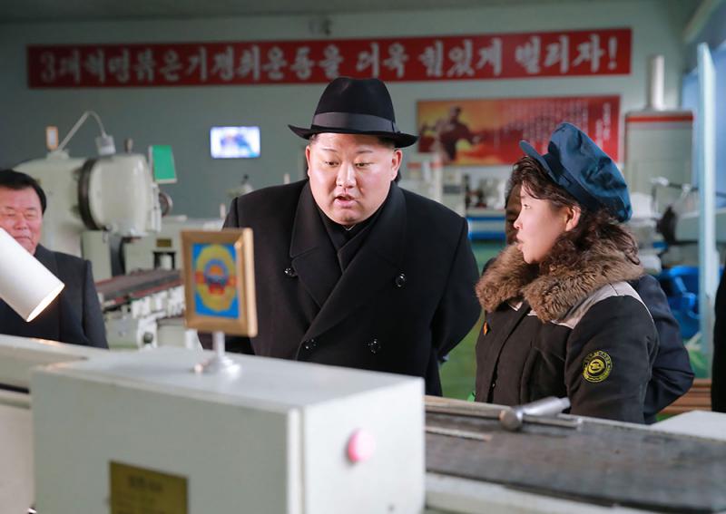圖:朝鮮領導人金正恩(左)近日視察平壤無軌電車工廠/朝中社
