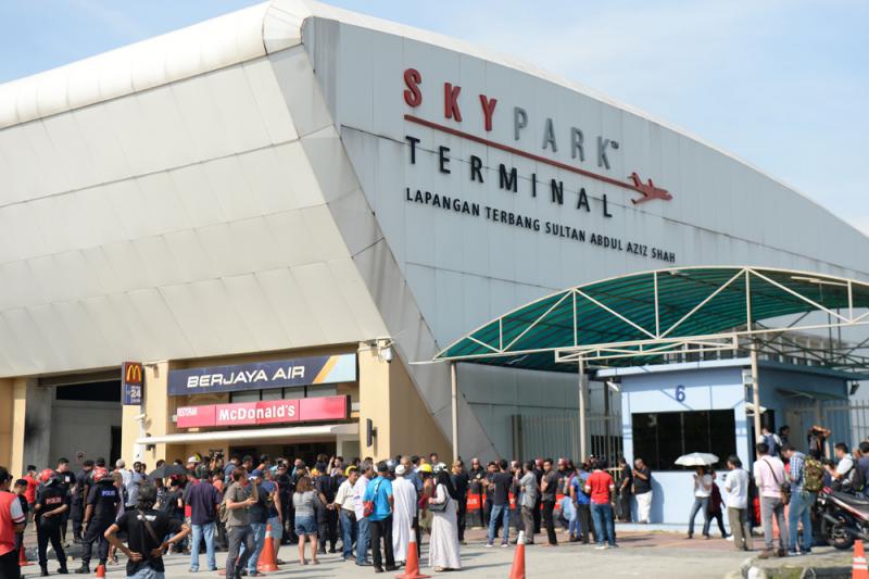 圖:大批民眾和記者12日一早到機場堵截納吉布/法新社