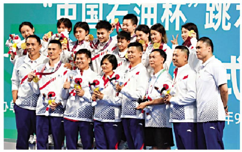 圖:廣東跳水隊奪冠後在頒獎台上合影。\全運組委會圖片