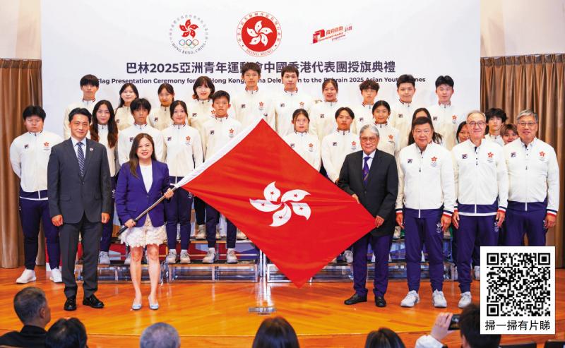 第三屆亞洲青年運動會(亞青運)將於10月22至31日在巴林舉行,中國香港體育協會暨奧林匹克委員會(港協暨奧委會)昨日在奧運大樓舉行「中國香港代表團授旗典禮」,並由文化體育及旅遊局局長羅淑佩主禮授旗儀式。本屆港隊派出逾100名運動員,分別參加14個大項賽事,是亞青運歷來最龐大的團隊。羅淑佩表示,相信一眾青年運動員可以在本屆賽事發揮堅毅不屈的香港精神,突破自我,為香港增添光彩。\大公報記者 朱家立