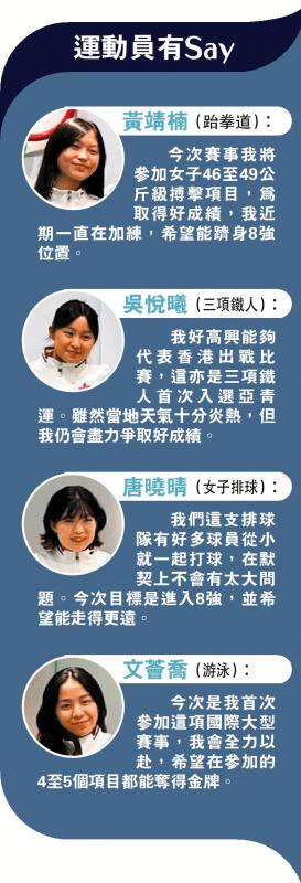 我好高興能夠代表香港出戰比賽,這亦是三項鐵人首次入選亞青運。雖然當地天氣十分炎熱,但我仍會盡力爭取好成績。
