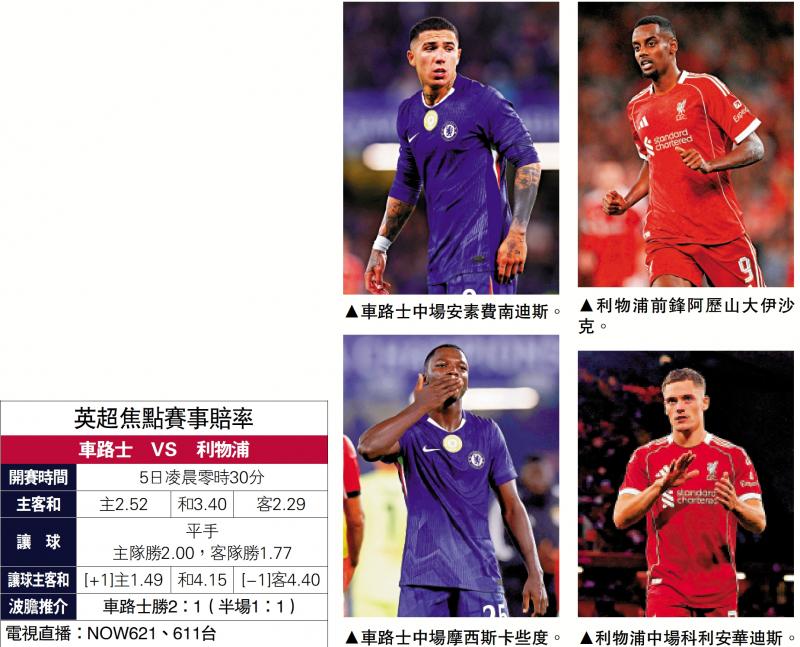 阿根廷中場安素先在2023年初以破當時紀錄的近1.07億鎊由賓菲加加盟車路士,摩西斯就在同年夏天以1.15億從白禮頓前來與安素當隊友;今年6月德國進攻中場華迪斯以刷新紀錄的1.16億鎊由利華古遜加盟利物浦,不過瑞典射手伊沙克「黃雀在後」,於夏季轉會窗壓哨日以1.25億鎊從紐卡素來投,令今場英超將首次有4位億鎊球員同場。