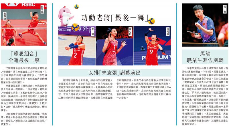 巴黎奧運會羽毛球混雙金牌得主鄭思維/黃雅瓊,將在全運會後正式告別羽壇。在去年底奪得年終總決賽冠軍後,「雅思組合」宣布退出國際賽場,而全運會將是他們職業生涯的告別演出。